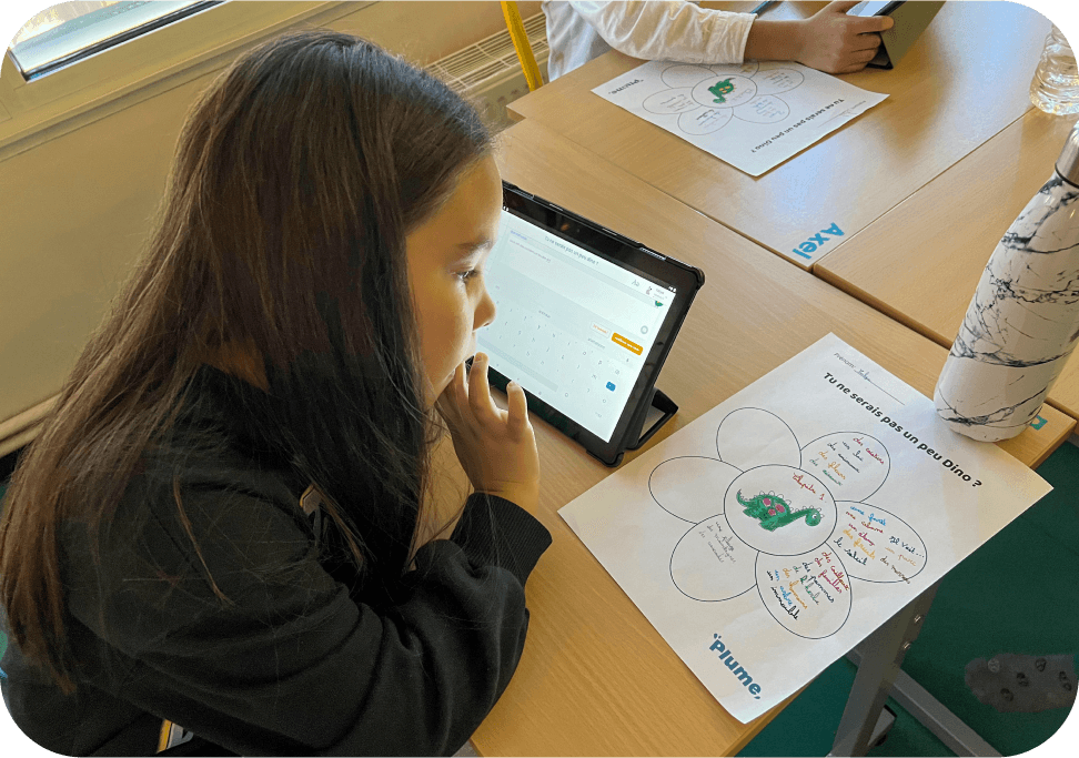 “Enseignante depuis plus de 20 ans, je commençais à m'essouffler dans le domaine de la production d'écrits... Plume m'a permis de me renouveler et de proposer aux élèves des situations d'écriture motivantes pour tous et adaptées à chacun.”